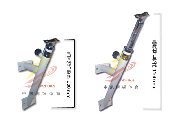 壁掛式支架:立柱為φ60鋼管,內有φ35實心圓鋼作升降桿,升降高度為800至1100,表面噴塑處理。帶碰珠降。