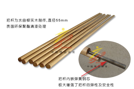 水曲柳具有彈性、韌性好,耐磨,耐濕等特點。紋理直,花紋美麗,有光澤,硬度較大。水曲柳加工性能良好,適合干燥氣候,且老化極輕微,性能變化小,具有極良好的總體強度性能,良好的抗震力和蒸汽彎曲程度.把桿內嵌彈簧鋼芯極大增強了把桿的彈性、柔韌性和安全性,確保舞蹈者把桿訓練的強度要求。